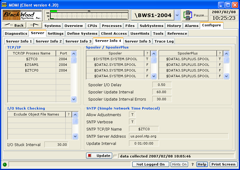 The Server / Server Info 4 screen presents and continues a variety of configuration information from the server perspective.
