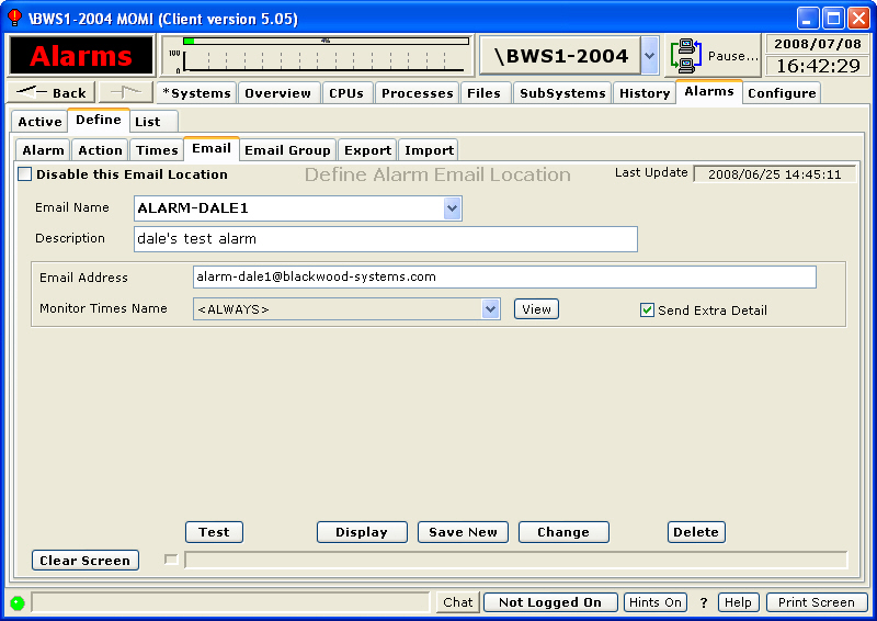 The field Monitor Times Name may be specified to place a time limitation on emails.