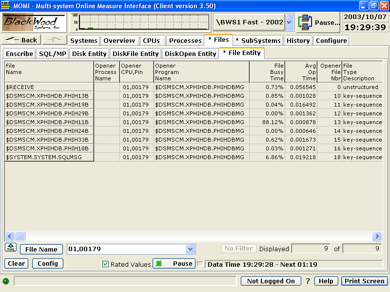 A local process opening a remote file can be measured locally. For example, if you are on system \BWS1 and want to see the file level activity across Expand, you would enter in the File Name field \BWS2.$*.*.* .