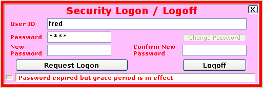 After attempting to logon and the password is expired but has a grace period or if Change Password is pressed, additional fields are displayed to allow the user the ability to alter their password.
