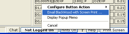 To use MOMI's built-in problem reporting software, navigate to the screen in question (if applicable) and right-click on the Print Screen button located in the lower right-hand corner of the MOMI window (this button is labeled Clipboard if a printer is not available) and select Email BlackWood with Screen Print....