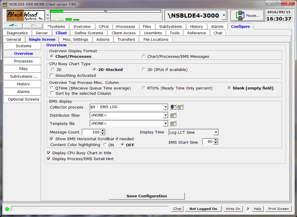 After making any change(s), press Save Configuration to cause the settings to be stored in the MOMI.INI file.