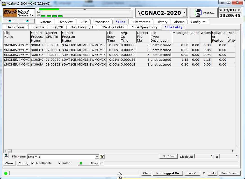 A local process opening a remote file can be measured locally. For example, if you are on system \BWS1 and want to see the file level activity across Expand, you would enter in the File Name field \BWS2.$*.*.* .