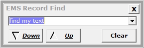 The Find button allows search within the messages stored within the EMS screen buffer with find next and find previous functionality.
