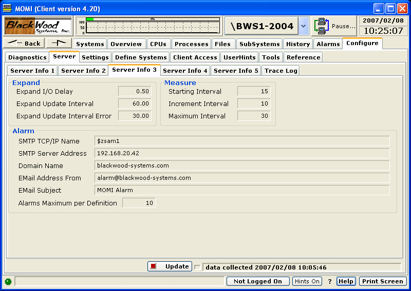 The Server / Server Info 3 screen presents and continues a variety of configuration information from the server perspective.
